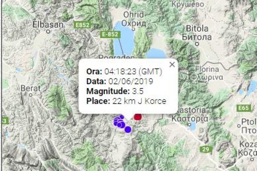 Tërmetet nuk i janë ndarë Korçës as sot, pas panikut të madh që shkaktuan dje në disa fshatra të saj dhe shembjeve të mureve. 15 tërmete me fuqi të mesme janë regjistruar nga Instituti i Gjeoshkencave vetëm sot, deri në orën 14:00. Më i madhi ndër ta ka qënë 3.5 ballë. Ndiqni hartën: