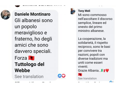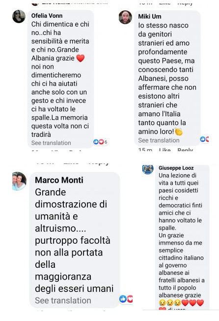 “Do e mbajmë mend këtë gjest të madh të Shqipërisë! Faleminderit! Ashtu siç nuk do të harrojmë dredhitë e mëdha të vendeve të tjera. Faleminderit juve që u zbuluat kush ishit”, shprehet një italiane.