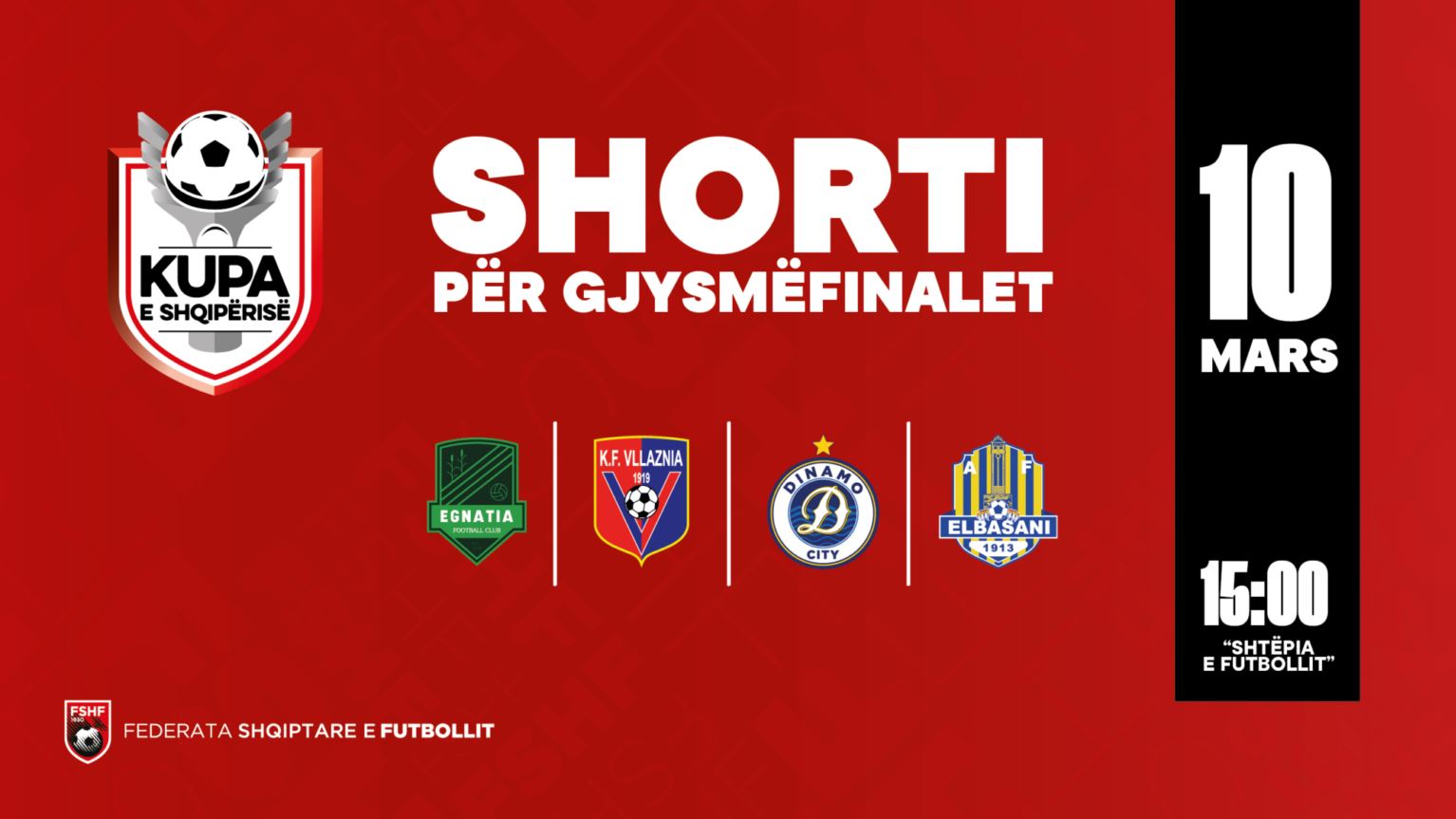 Këtë pasdite në ambjentet e “Shtëpisë së futbollit” në kryeqytet, FSHF hodhi edhe shortin sa i takon çifteve gjysmëfinaliste për Kupën e Shqipërisë, e kompeticioni i dytë për nga rëndësia në vendin tone, aty 4 skuadrat e mbetura, Egnatia, Vllaznia, Dinamo dhe Elbasani mësuan fatin e tyre.