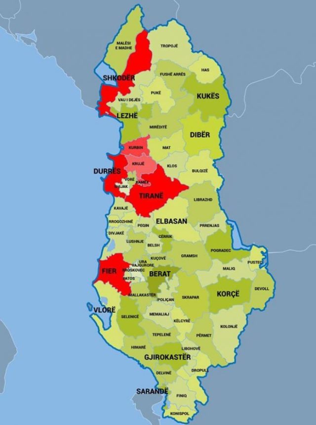 Kjo do të thotë se Tirana, Durrësi, Kruja, Kurbini, Shkodra dhe Fieri do të vijojnë me kufizime, ku ëvizja do lejohet deri në orën 17:30.