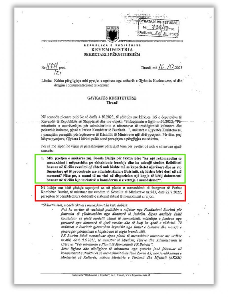 Për ta bërë më qesharake përgjigjen e tyre, qeveria i bashkëlidh përgjigjes drejtuar Gjykatës Kushtetuese, edhe Raportet e UNESCO për Butrintin, për vitet 2004, 2005, 2009, pra të 14-19 viteve përpara, si arsye jusitifikuese sipas tyre, se përse menduan që ta jepnin me koncesion Butrintit në vitin 2022!