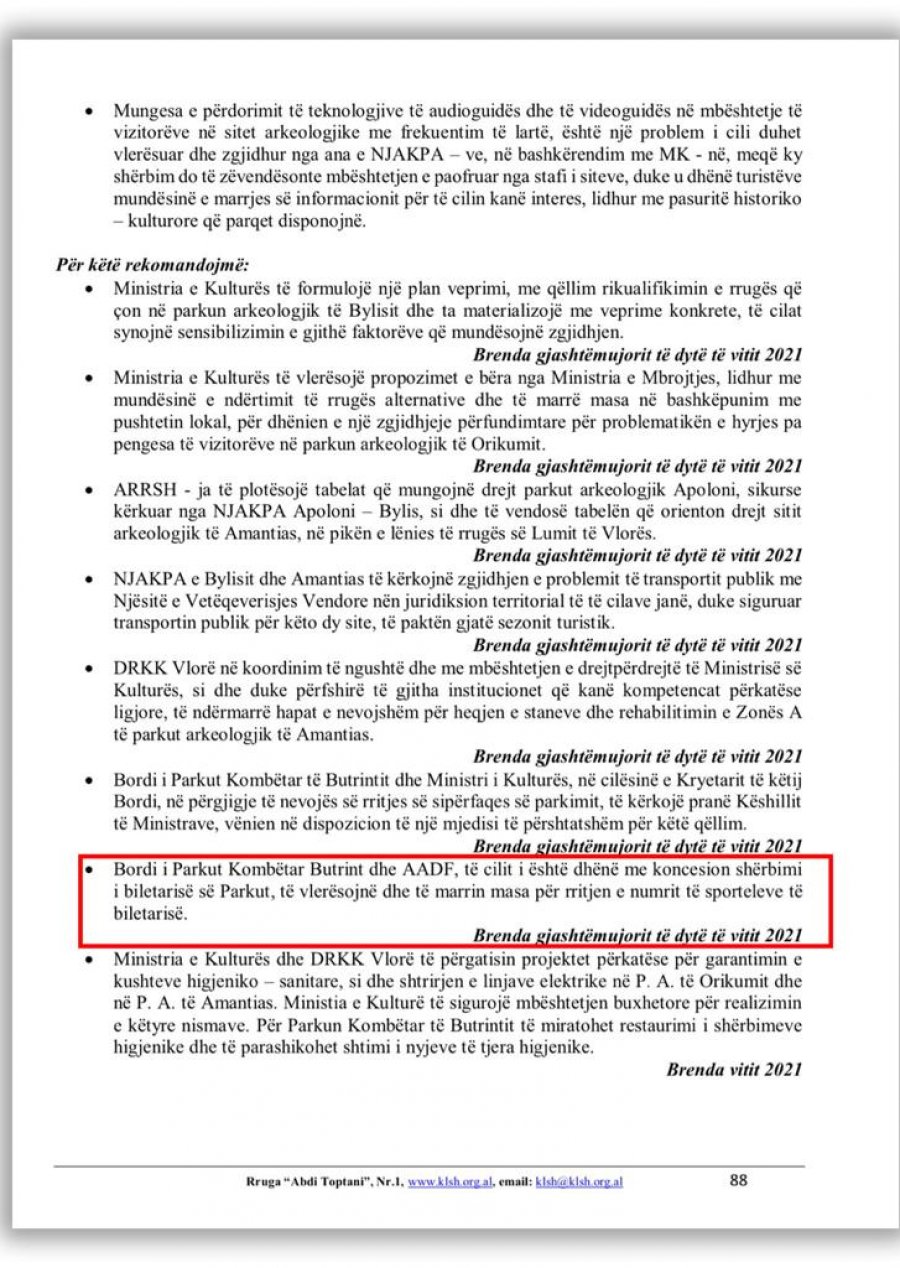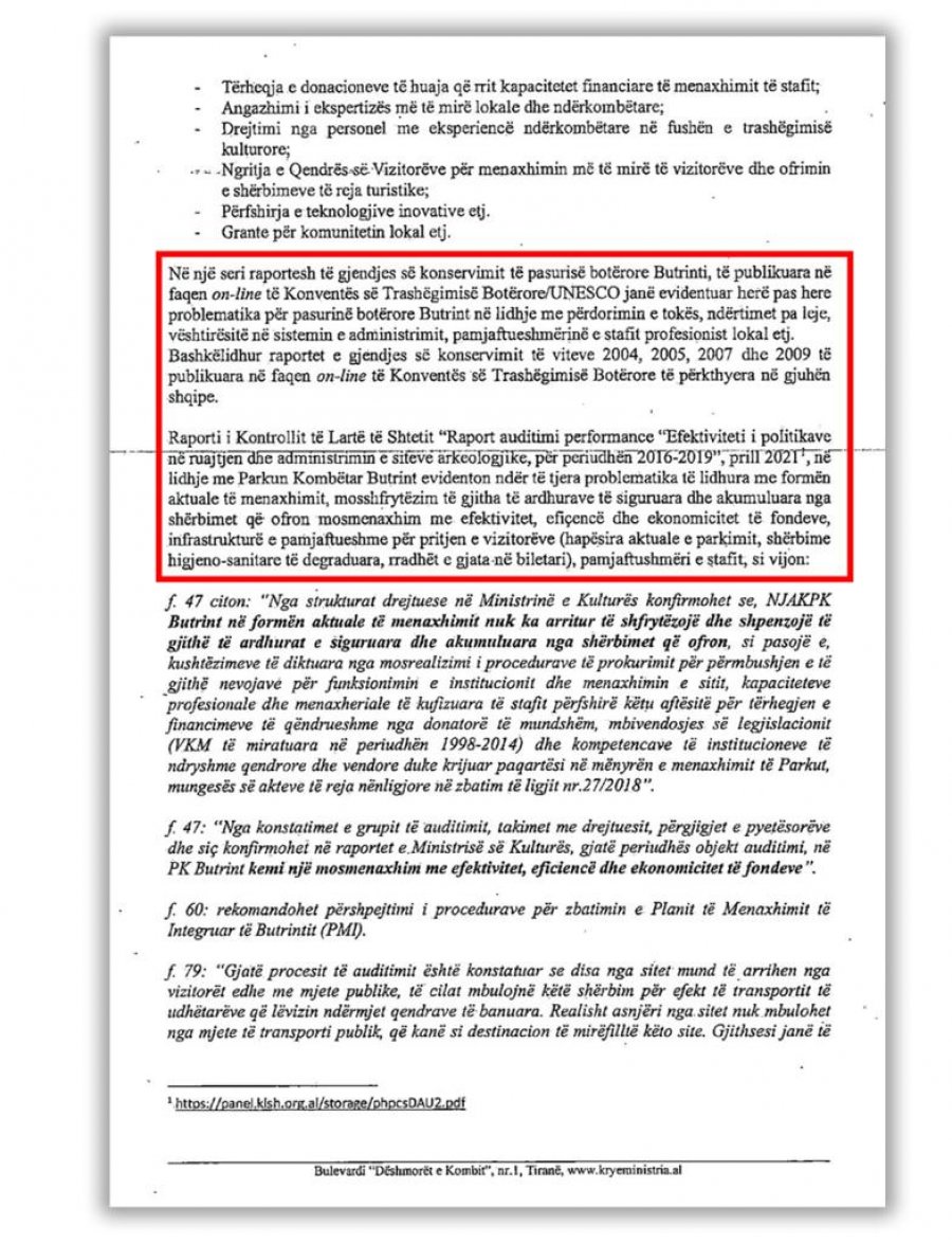 Dokumenti i dytë qe ja mbushi mendjen qeverisë, për ta dhënë Butrinin me koncesion është dhe raporti i KLSH për problematikat e gjetura në vitin 2021.