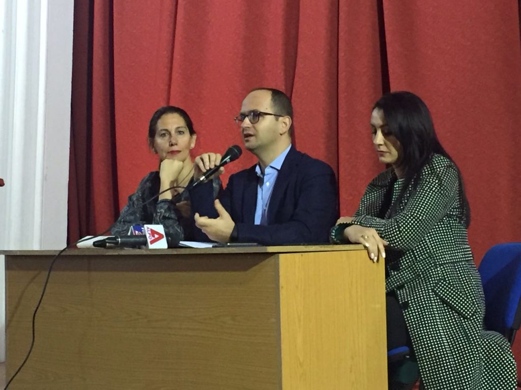 Bashkë me Bushatin në takim është edhe deputetja e zonës, Mirela Kumbaro si dhe zv.ministrja e Jashtme, Artemis Dralo.