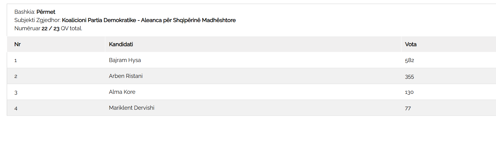 Lista e hapur, si ndahen votat mes kandidatëve në Përmet (rezultati)
