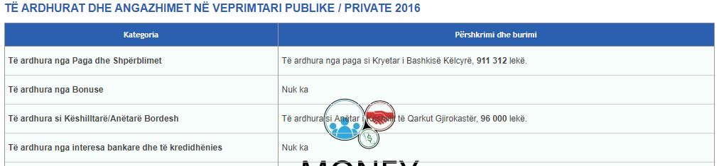 Të ardhura nga paga si Kryetar i Bashkisë Këlcyrë, 911 312 lekë.