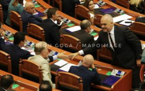 Kur të gjithë po mendojnë se opozita do të jetë e ‘zjarrtë’ në këtë kuvend dhe do të nxjerrë shpatën kundër qeverisë dhe maxhorancës të kryesuar nga PS, kjo foto ekskluzive e “Mapo.al” tregon një aspect krejt tjetër në realitet. Në foto duket qartë se si kryeministri, njëherësh dhe kreu i PS-së, Edi Rama, i ka zgjatur dorën dhe ka takuar liderin e pozitës njëherësh kryetar të PD-së, Lulzim Basha, sot gjatë seancës parlamentare të pasdites në Kuvend.
