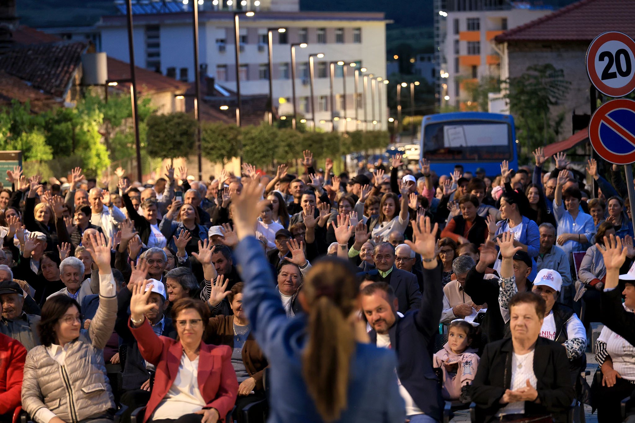 Me kandidatët Piro Dhima dhe Anila Dhimitri, drejtuesja politike e PS-së, Mirela Kumbaro, zhvilloi takimin përmbyllës të fushatës elektorale në Përmet e Këlcyrë.