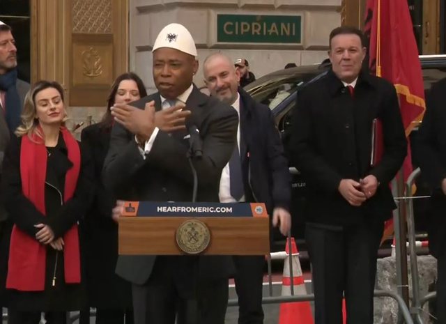 Me qeleshe në kokë dhe simbolin e shqiponjës, kryetari i bashkisë së New York-ut feston Pavarësinë e Shqipërisë