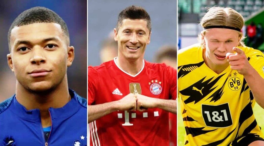 Erling Haaland (Norway – Borussia Dortmund) Kylian Mbappe (France – Paris Saint-Germain) Robert Lewandowski (Poland – FC Bayern München)