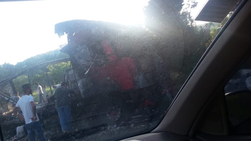 Ka marre papritur flake ne afersi te ktheses se Levanit nje maune e ngarkuar perplot me ushqime. Shkak i zjarrit te papritur duhet te kene qene ndonje shkendije kandelete e nxitur nga temperaturat e larta. Zjarri qe rra papritur shpertheu maunen e bashke me te edhe tonelatat e ushqime. Por kane mjaftuar pak sekonda dhe skena gati horor eshte mbushur plot njerez, qe neper flake nisen grabitjen e mallit. Per disa minuta rruga vijoi e bllokuar deri ne mberritjen e mjeteve te shuarjes se zjarrit.