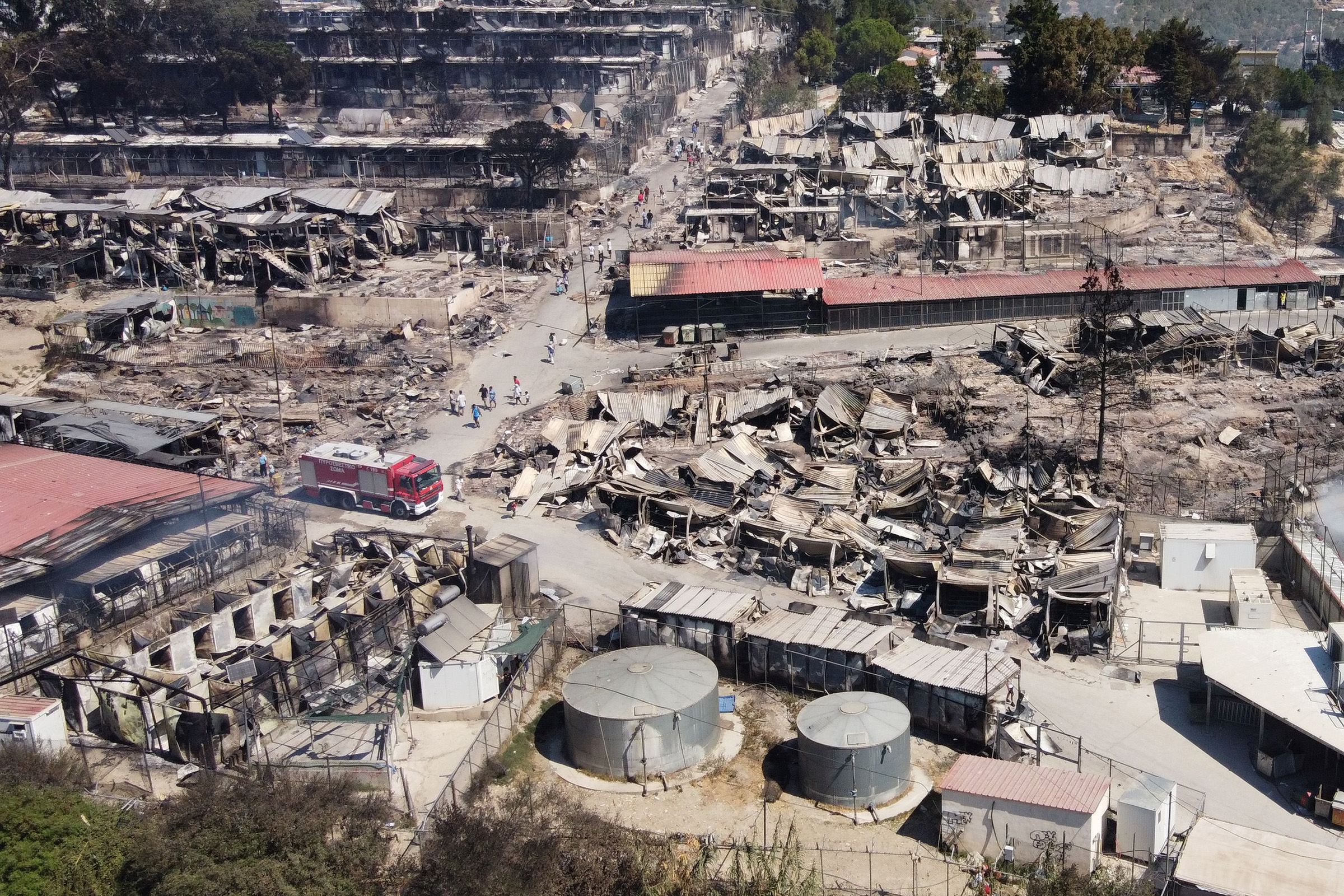 Pas djegies së kampit Moria në ishullin e Lebsos, mijëra emigrantë kanë mbetur të bllokuar duke fjetur rrugëve apo në fushat pranë kampit.