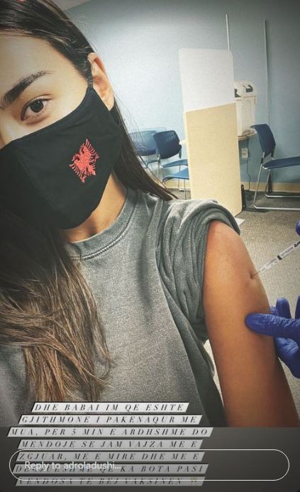 “Dhe babai im që është gjithmonë i pakënaqur me mua, për 5 minutat e ardhshme do mendojë se jam vajza më e zgjuar, më e mirë dhe më e dëgjueshme që ka bota pasi vendosa të bëj vaksinën”, ka shkruar ajo.