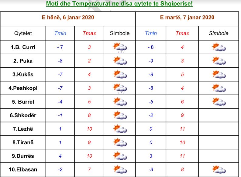 Moti i keq, shikoni sa gradë nën zero shënoi termometri në secilin qytet të Shqipërisë