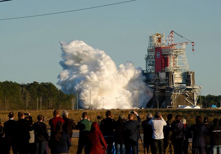 Të katër motorët RS-25 u vunë në punë për tetë minuta gjatë provës, duke mbushur zonën përreth dhe qiellin me re tymi të bardhë.