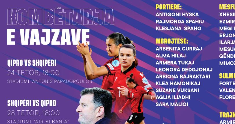 Shqipëria e vajzave do të zhvillojë dy ndeshje shumë të rëndësishme ndaj Qipros, të vlefshme për fazën play-out të UEFA Nations League, që do të përcaktojnë nëse skuadra kuqezi do të mbetet në Ligën B apo do të zbresë në Ligën C për edicionin e ardhshëm.