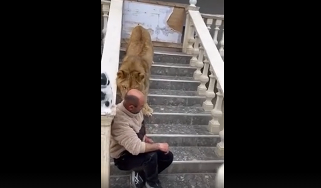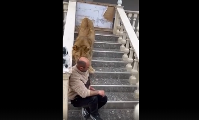 Një video e pazakontë është shpërndarë në mediat online ku duket një luan i cili kafshon një burrë në oborrin e shtëpisë së tij. Në video duket luani i cili papritur sulmon burrin dhe e kafshon në qafë.