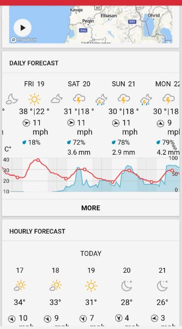 Edhe përgjatë ditës së nesërme vendi ynë do të karakterizohet nga mot i kthjellët me temperatura të larta, ku vlerat maksimale pritet të arrijnë në 41 gradë celcius. Përgjatë dy ditëve të fundit Shqipëri është përfshirë nga i nxehti afrikan, i cili do të vijojë edhe ditën e nesërme. Ndërkohë që duke nisur nga dita e shtunë e në vijim temperaturat do të ulen ndjeshëm sa i përket vlerave maksimale, si dhe do të rikthehen reshjet e shiut në të gjithë territorin.
