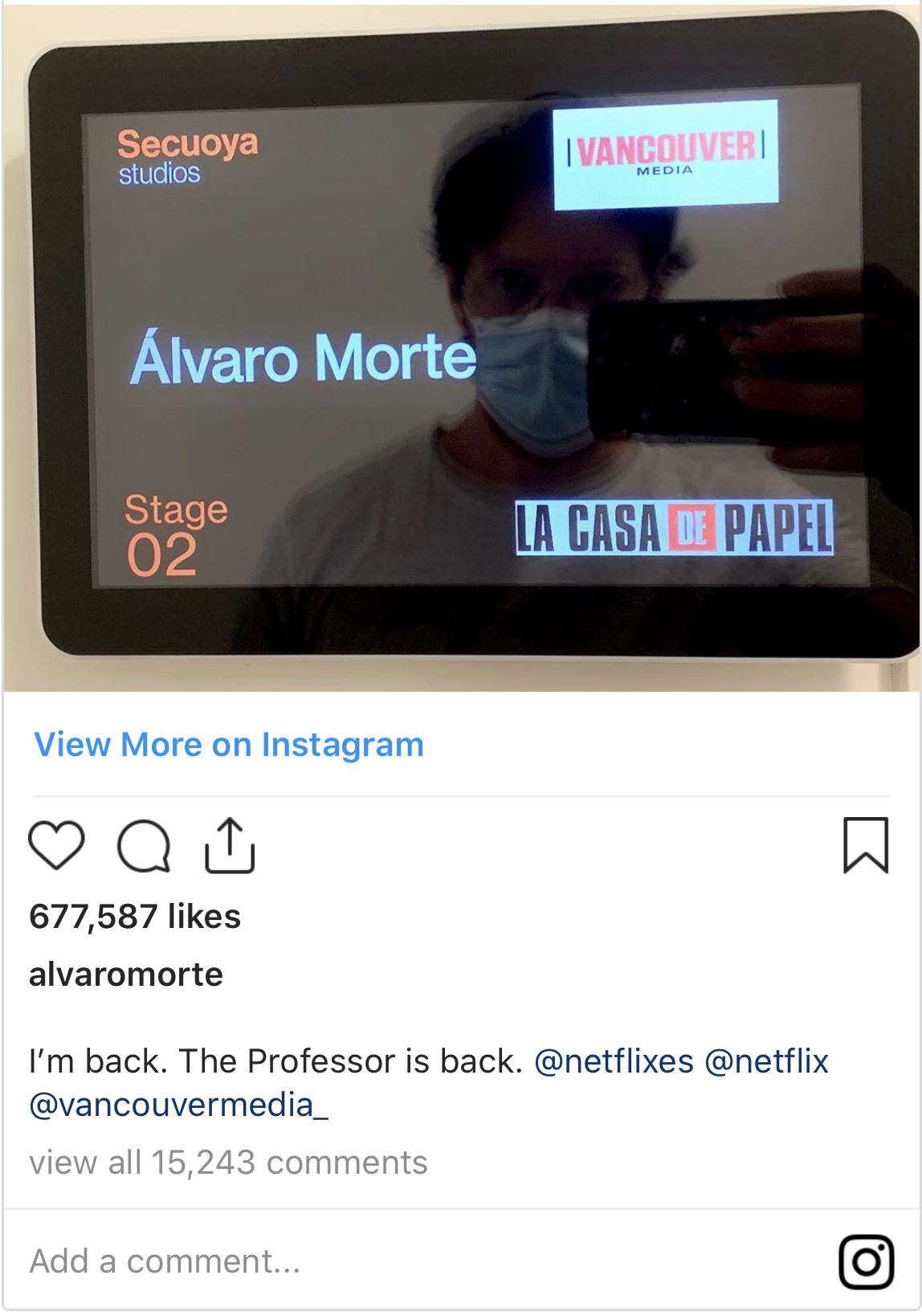 Aktori ka ndarë një foto nga prapaskenat e xhirimeve, ndërsa bashkangjitur shkruan: “U riktheva! Profesori u rikthye!”