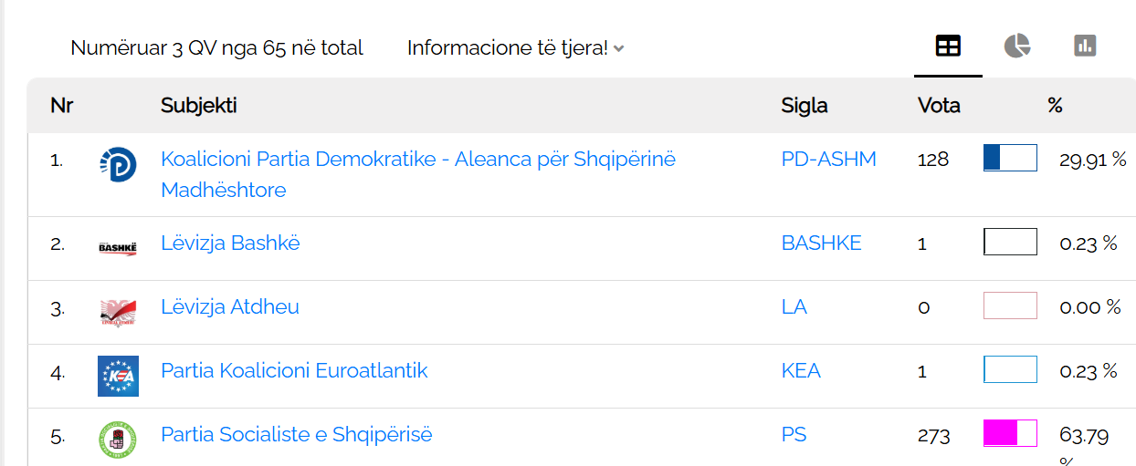 PS ka marrë 63,79% të votave ndërsa PD vetëm 29,91% të votave. Sipas këtij trendi, opozita do të shkojë drejt një rezultati katastrofik në këto zgjedhje.