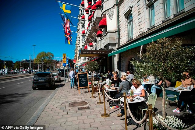 Në disa foto të publikuara nga Daily Mail, që i përkasin datave 22 deri më 26 prill shfaqen njerëz pa maska dhe të ulur në lokale të cilët shijojnë ngrohtësinë e parë të pranverës në vendin skandinav, në ndryshim nga vendet e tjera të evropës, ku njerëzit duhet ta shijojnë pranverën nga ballkonet apo dritaret e shtëpive.