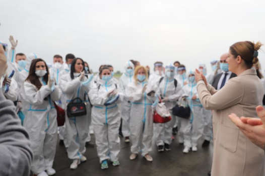 Ministrja e Shëndetësisë, Ogerta Manastriliu ka përcjellë në aeroportin e Rinasit edhe ekipin e dytë mjekësor shqiptarë drejt Italisë. Në fjalën e saj, Manastirliu falenderoi edhe njëhërë të gjithë mjekët dhe infermierët drejt Italisë, duke i siguruar se do të kujdesej për familjen e tyre. Më tej, ministrja tha se fillimisht të gjithë do të shoqëroheshin deri në Itali nga zv.ministri i Jashtëm dhe më pas do të ndaheshin për të shërbyer në spitalet e Romës.