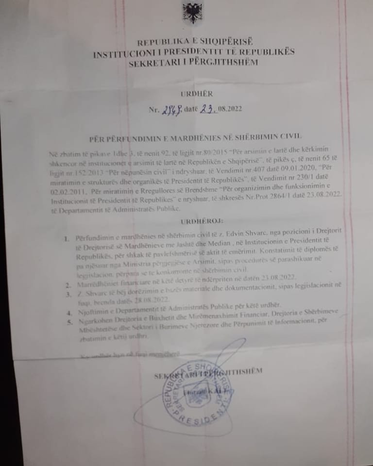 Edvin Shvarc, djali i përkthyesit të madh me origjinë hebreje, Robert Shvarc është larguar nga posti që mbante në Presidencë me ardhjen e Bajram Begajt.