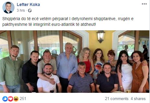Ndërsa po të njëjtën foto, Lefter Koka e ka komentuar me mbishkrimin: Shqipëria do të ecë vetëm përpara! I detyrohemi shqiptarëve, rrugën e pakthyeshme të integrimit euro-atlantik të atdheut!