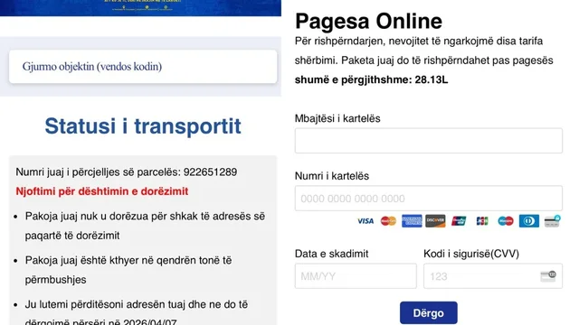 Policia e Shtetit u ka bërë apel qytetarëve se po qarkullojnë mesazhe mashtruese, të cilat paraqiten në mënyrë të rreme si njoftime nga shërbimet postare për dorëzimin e paketave.