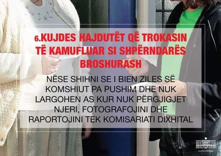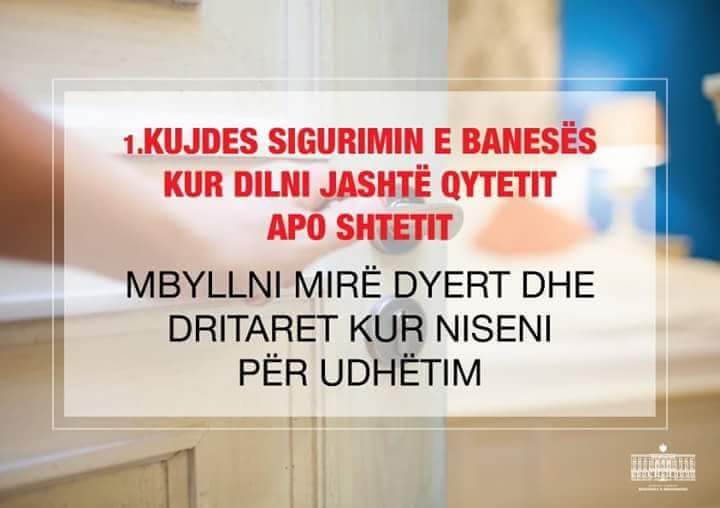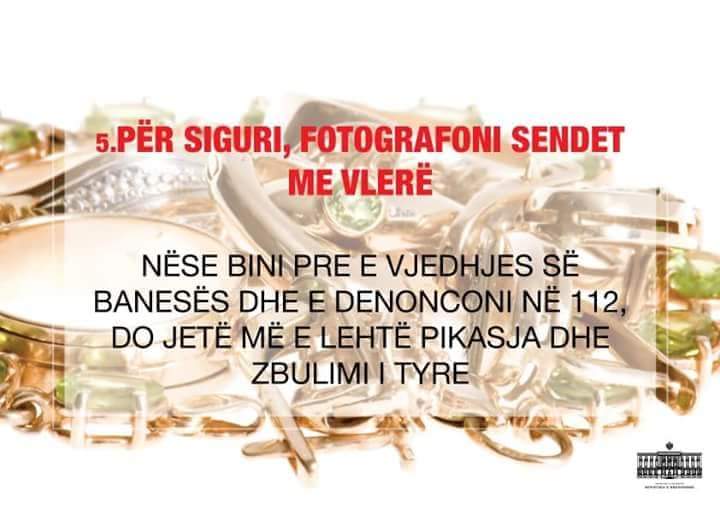A jeni kthyer në shtëpi? Mos hezitoni të raportoni veprime apo sjelle të dyshimta në zonën ku banoni, përmes numrit 112.