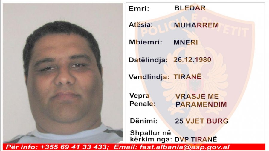 Në datën 30.11.2015, në Tiranë, shtetasi Bledar Mneri ka vrarë shtetasin V. B. Gjykata e Shkallës së Parë Tiranë i ka vendosur dënimin me 25 vjet burg, për veprat penale “Vrasja me paramendim” dhe “Armëmbajtja pa leje”.