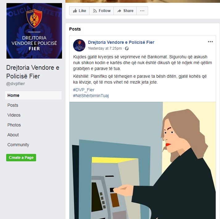 Nese keni per te terhequr para nga bankomati, mos e beni kete gjate mbremjeve, apo kur ne rruge nuk ka levizje, ne menyre qe te ruani veten nga nje rrezik i mundeshem. Apelin e ben drejtoria vendore e Policisë Fier, e cila ne faqen e saj ne Fb ka shperndare kete njoftim: Kujdes gjatë kryerjes së veprimeve në Bankomat. Sigurohu që askush nuk shikon kodin e kartës dhe që nuk është dikush që të ndjek më qëllim grabitjen e parave të tua. Këshillë: Planifiko që tërheqjen e parave ta bësh ditën, gjatë kohës që ka lëvizje, që të mos vihet në rrezik jeta jote.