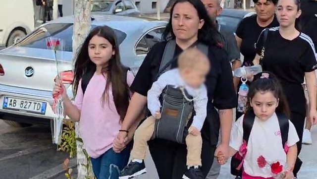 Të kapura për dore nga nëna e tyre Kristina, e cila mbante me vete dhe foshnjën 9- muajshe teksa përmbahej të mos lotonte, dy vajzat iu bashkuan fëmijëve të tjerë , në shkollën e mesme artistike “ Jakov Xoxa” për të nisur rrugëtimin e dijes.