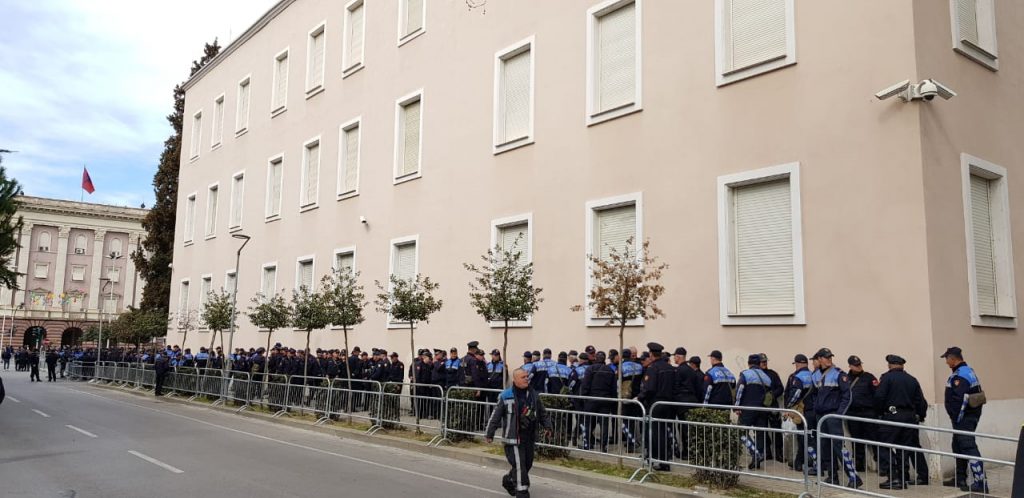 Opozita do të zhvillojë sot protestën e pestë kundër qeverisë ‘Rama’. Në dallim nga herët e tjera ajo që bie në sy janë masat e shtuara të sigurisë rreth Kryeministrisë. Selia e qeverisë  është rrethuar nga një gardh me hekura, i njëjti që u përdor para Kuvendit. Pas gardhit me hekura është vendosur kordoni i policisë. Mësohet se janë mbi  1600 policë të angazhuar për mbarëvajtjen e kësaj proteste. Leja nga Policia e Shtetit është dhënë për 48 orë. Shihni më poshtë fotot që sjell LSA.