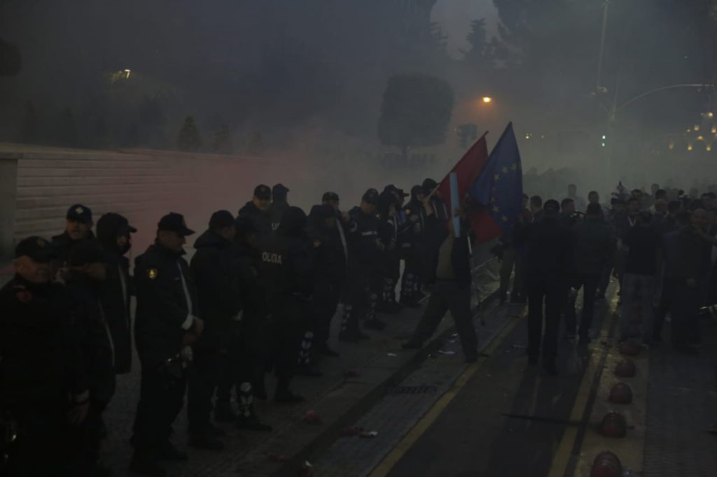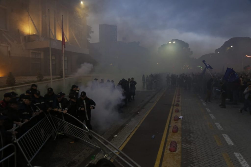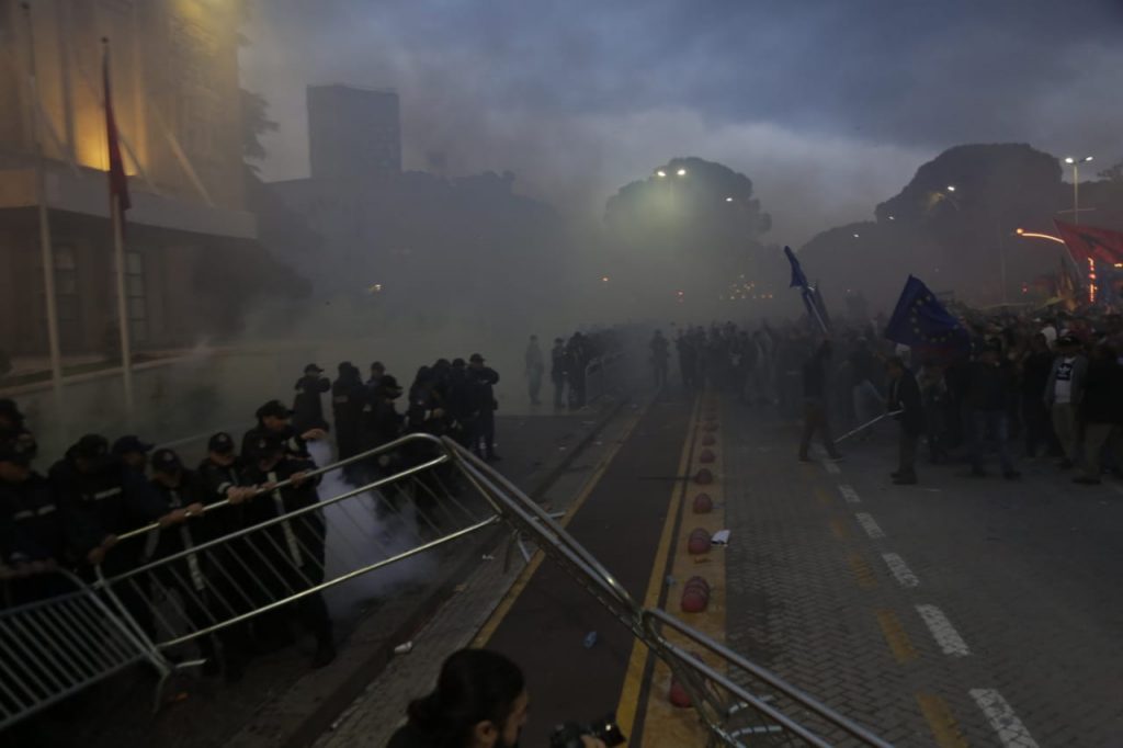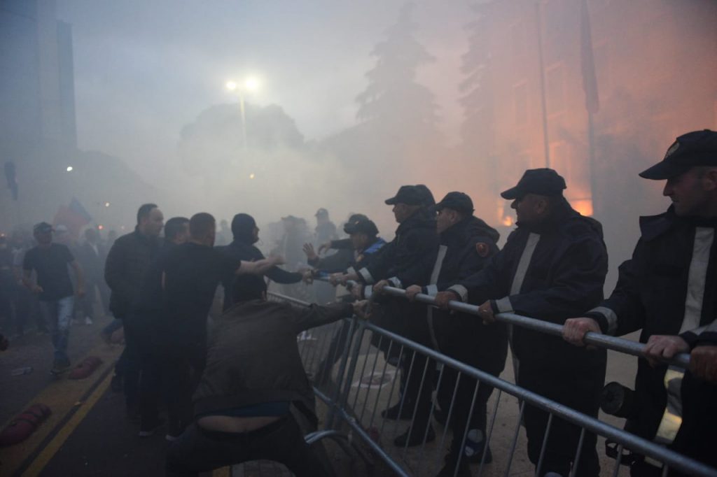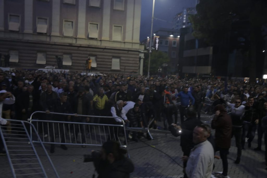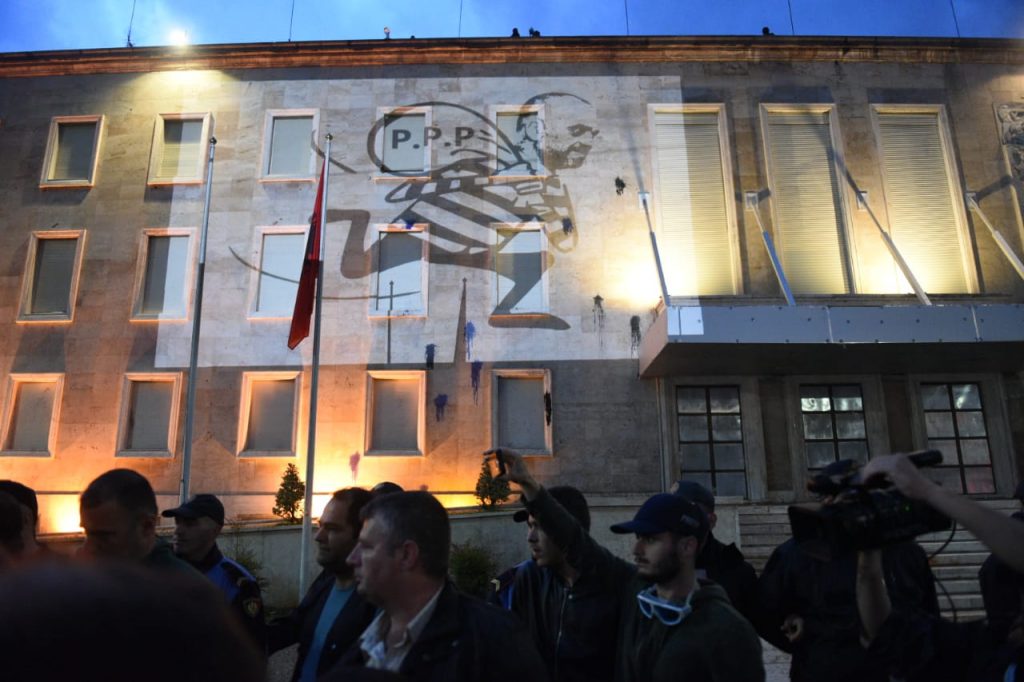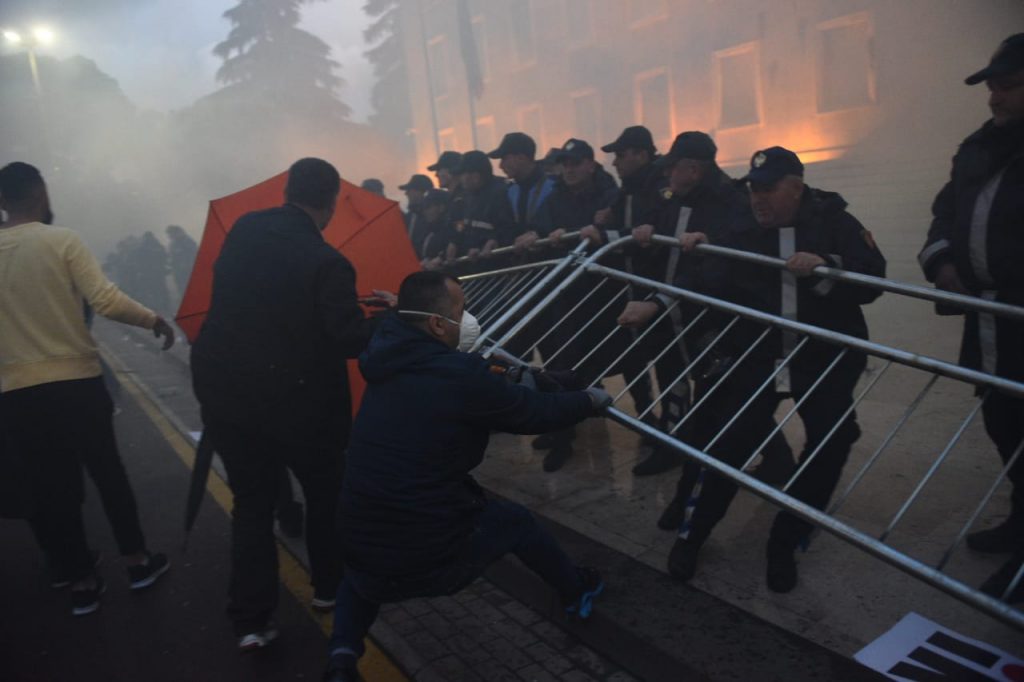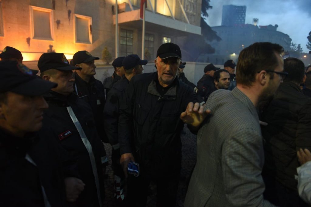 Protestuesit e opozitës kanë sulmuar godinën e Kryeministrisë me kapsolla, bomba molotov dhe sende të forta. Teksa zjarri dhe tymi kanë pushtuar fasadën e ndërtesës, shefi i opozitës ka vijuar fjalimin e tij. Në një moment Basha bëri thirrje që të mos preken punonjësit e policisë së shtetit.