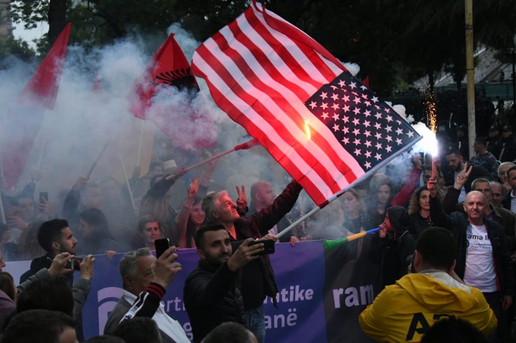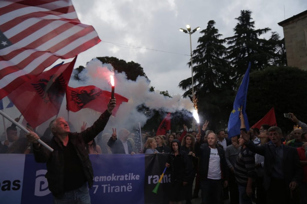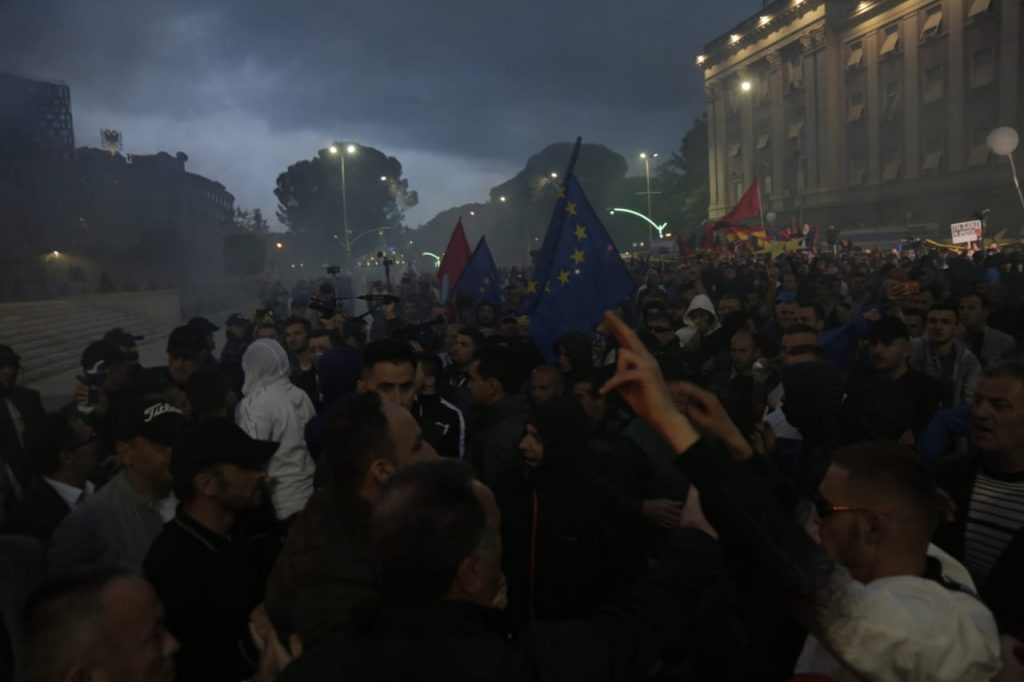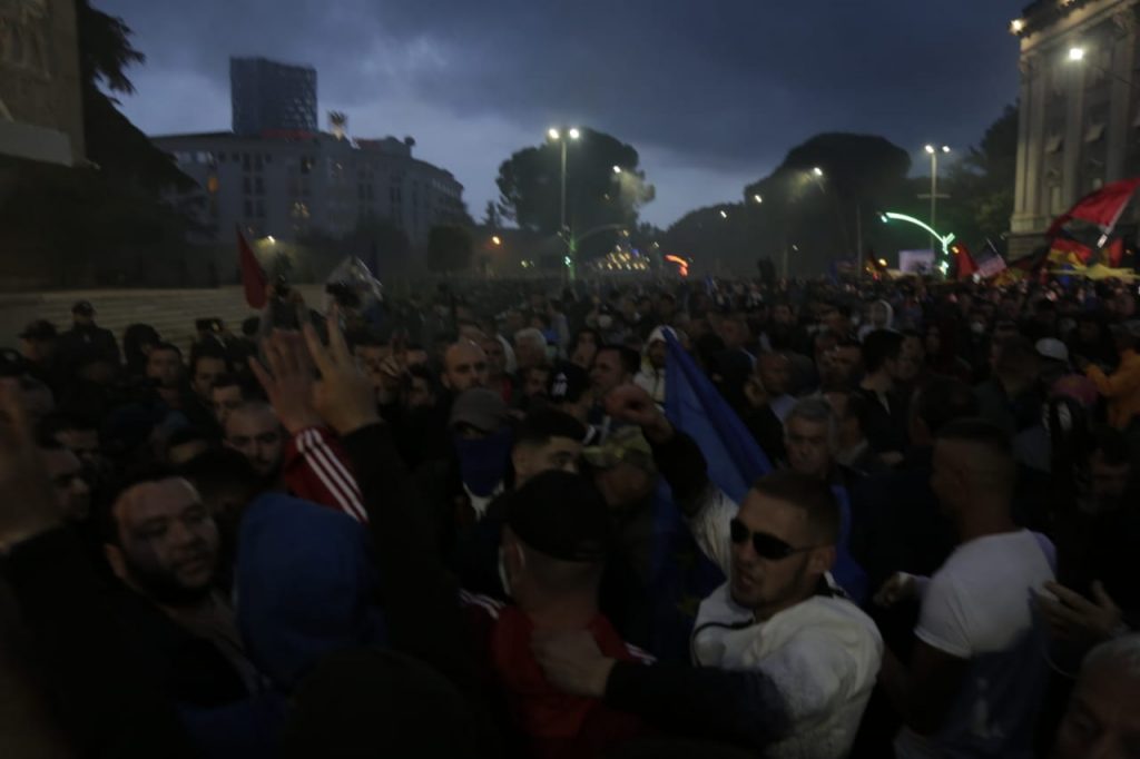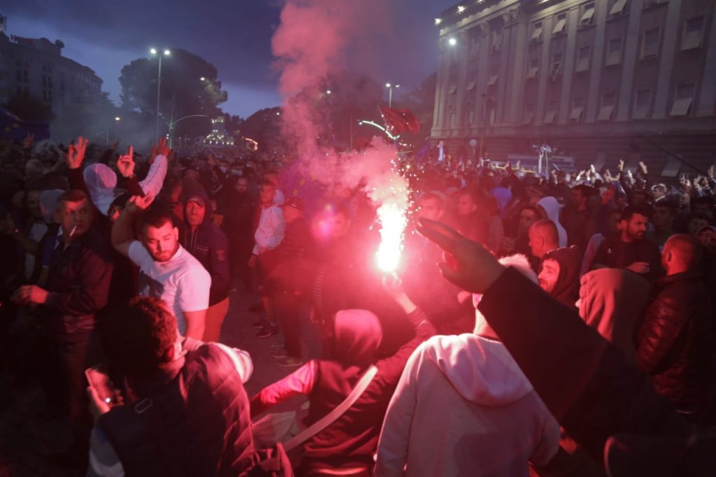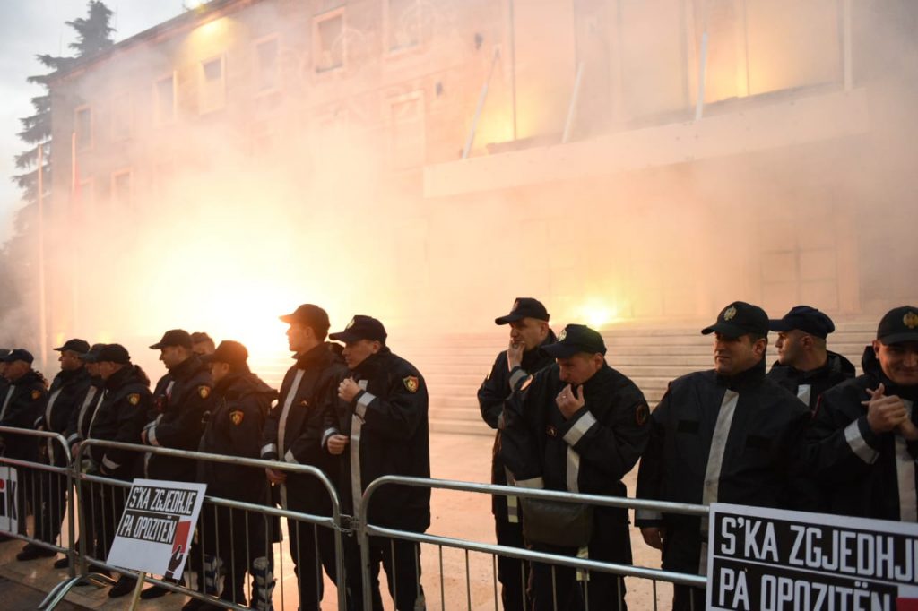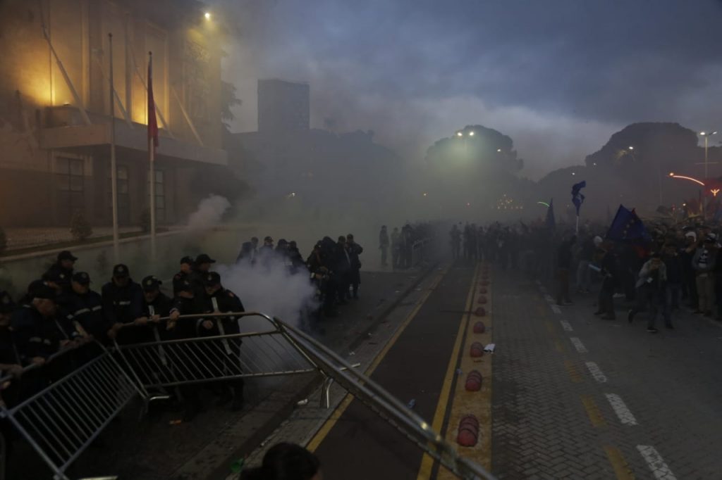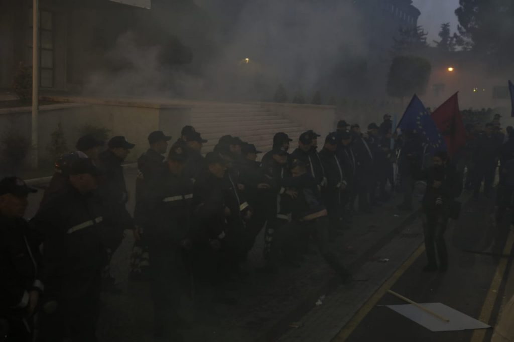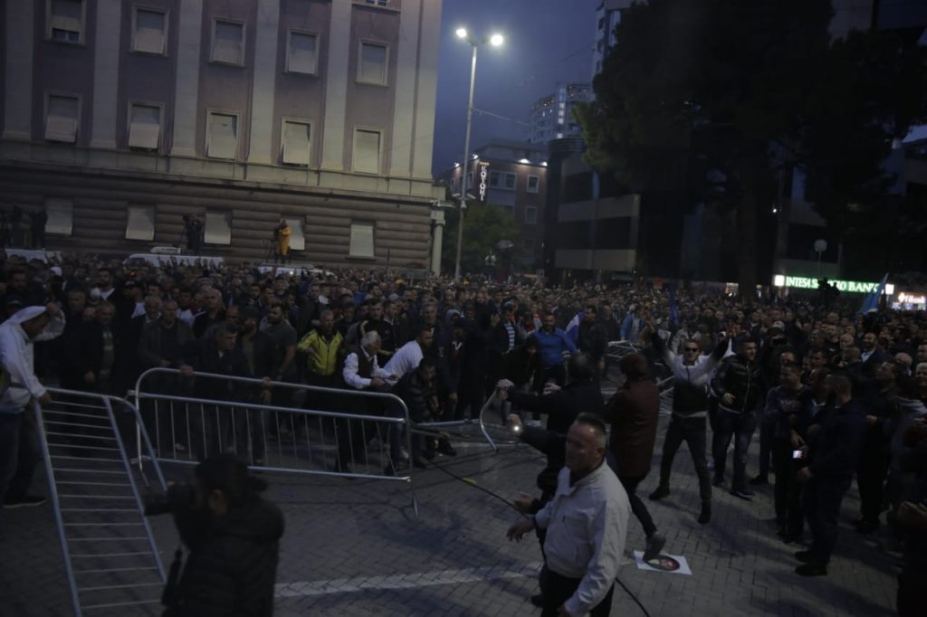 Protestuesit e opozitës kanë sulmuar godinën e Kryeministrisë me kapsolla, bomba molotov dhe sende të forta. Teksa zjarri dhe tymi kanë pushtuar fasadën e ndërtesës, shefi i opozitës ka vijuar fjalimin e tij. Në një moment Basha bëri thirrje që të mos preken punonjësit e policisë së shtetit.