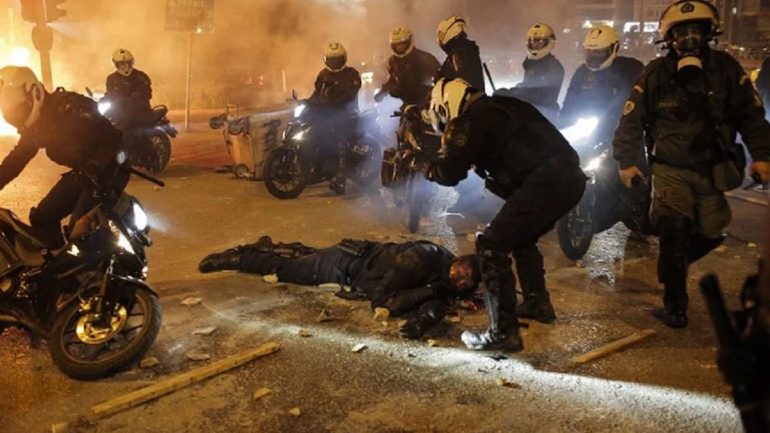 Pamje tmerri kanë pushtuar kryeqytetin e Greqisë, Athina pasi qendra e Nea Smyrni u shndërrua në një zonë lufte për disa orë të martën. Grupe protestuesish kanë nisur sulmet ndaj policisë me bomba molotov dhe gurë. Mediat greke shkruajnë se gjatë protestave u sulmua brutalisht një polic, i cili mbeti i plagosur rëndë. Disa nga kolegët e tij formuan një rreth tij për ta mbrojtur derisa arriti një ambulancë për ta transferuar në spital.