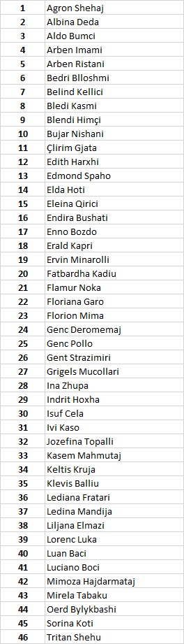 Në variantin e parë, lista e publikuar në media ishte me 46 kandidatë, ndërkohë që një variant i dytë i shpërndarë vetëm pak minuta më vonë ishte 47 kandidatë.