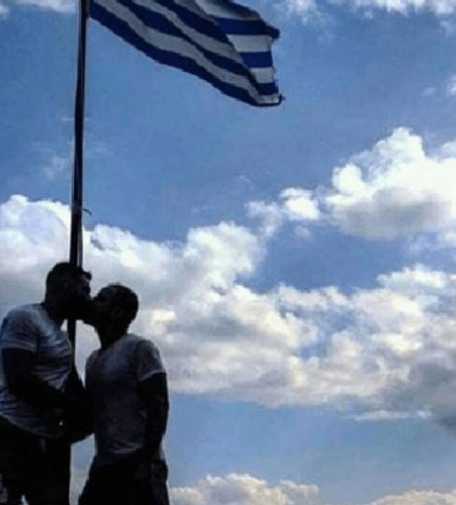 Puthje homoseksualësh poshtë flamurit kombëtar, foto që po ‘tërbon’ grekët