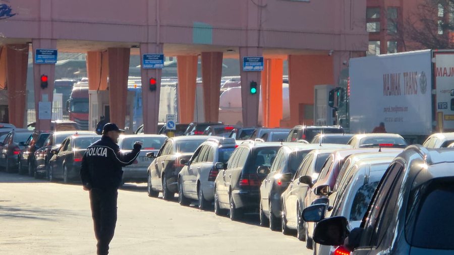 Në të dyja pikat e kalimit kufitar po punohet me 3 sportele hyrje dalje por fluksi i mjeteve është i lartë ndaj për këtë radha që krijohet është e gjatë, e pakta do të duhet të presësh të paktën 40 minuta për të hyrë apo dalë nga Shqipëria.