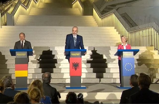 “Samiti u mbyll me diskutime të frytshme, me shkëmbime të hapura dhe ndjenjë të vërtetë miqësie. Nuk do gjeja dot kurrë fjalët e duhura për të falënderuar kancelarin, i cili qe i hapur për ta sjellë këtë proces jashtë kufijve të BE. Po ashtu për të falënderuar presidenten. Ky është një moment i vështirë për këdo, për shkak të krizave të një pas njëshme që kanë goditur të gjithë ne. Këta dy gjermanë krahë meje kanë orare e afate të përcaktuara, kështu që nuk dua të marr nga koha e tyre. Pranoni mirënjohjen time për gjithçka po bëni për ne dhe që jeni një fuqi e qetë mbresëlënëse që këmbëngulini për të shtyrë BE dhe Ballkanin për të ardhur më pranë njëri-tjetrit”, tha Rama.