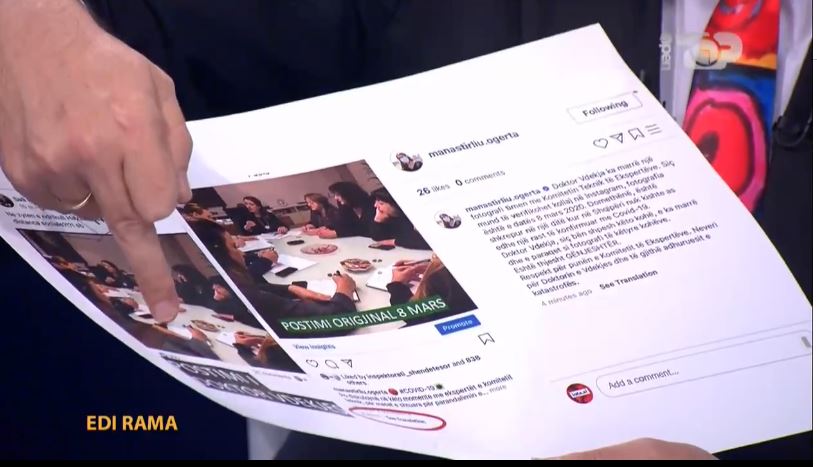 Shiko çfarë burri, malësori, shiko çfarë edukate, mbeturine e papërpunueshme. Kjo është një foto e cila për fat të mirë është në Instagramin e ministres së Shëndetësisë më 8 mars dhe e nxjerr sikur është një foto e djeshme.