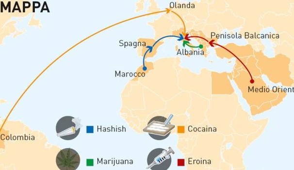 Shqipëria është e regjistruar në hartën globale të drogës si një vend prodhues dhe si një nyje shpërndarjeje. Ky vlerësim u konfirmua edhe në Raportin Botëror të Drogës 2017 nga Kombet e Bashkuara, i cili thekson ekzistencën e “dëshmive konkrete” të përfshirjes së grupeve kriminale shqiptare në të gjithë trafikimin e madh të drogës në Evropë (heroinë, kokainë, kanabis).