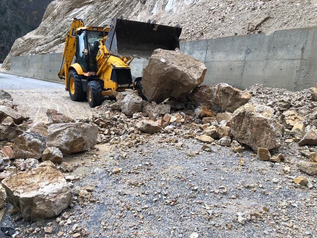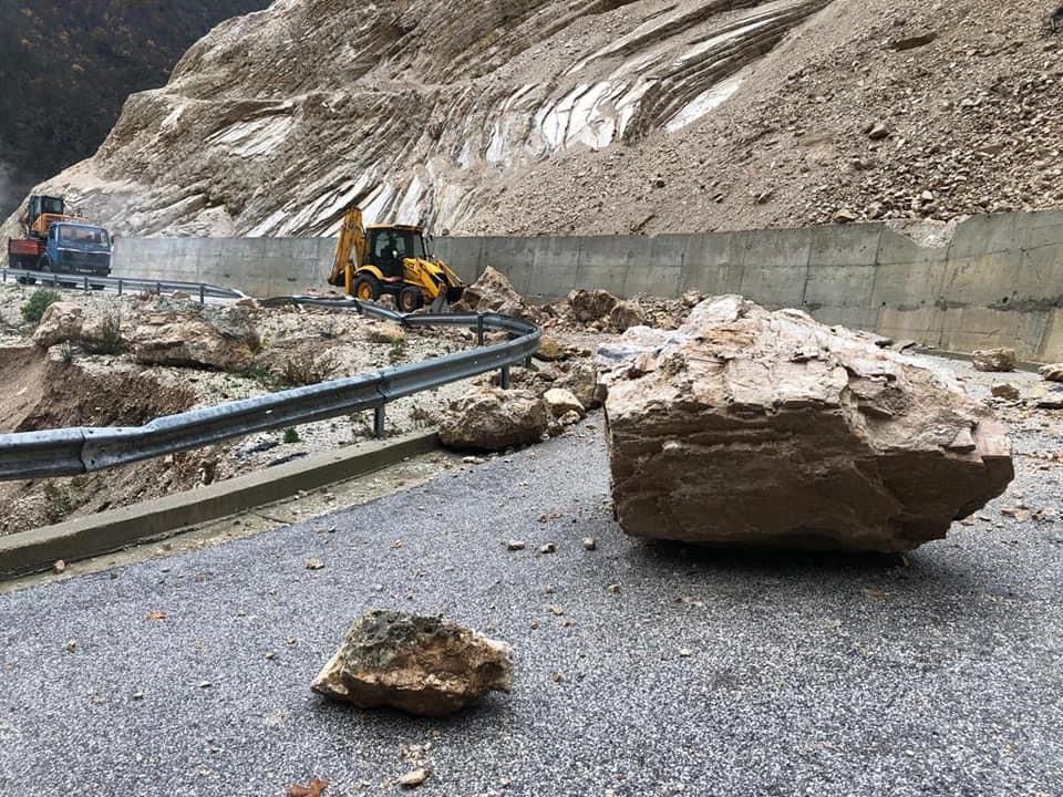 Siç shihet nga fotot, gurë të mëdhenj kanë bllokuar aksin rrugor Bënçë-Lekdush.