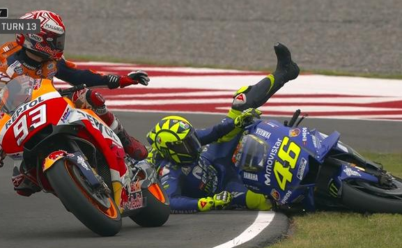 SHKËNDIJA — Zanafilla e urrejtjes së tyre daton që nga viti 2015 në Sepang, kur pas deklaratave nxitëse të Valentinos gjatë konferencës në lidhje me garën e mëparshme. “Mark luajti me ne në Australi, ai donte të favorizonte Lorencon dhe të bënte që unë të humbisja pikë”, shprehej asokohe Rosi në një garë vendimtare për luftën e titullit mes italianit dhe Lorencos. Raundi në Malajzi ishte si një larje hesapesh mes Rosit dhe Markezit, një duel i rrezikshëm në pistë, i kthyer në një çështje personale. Këmba që zgjatet, kontakti, Markez që bie, Rosi që përfundon i treti, por penalizohet dhe detyrohet të nisë nga rreshti i fundit në Valencia, në aktin e fundit në të cilin do të humbasë më pas edhe Kampionatin Botëror.