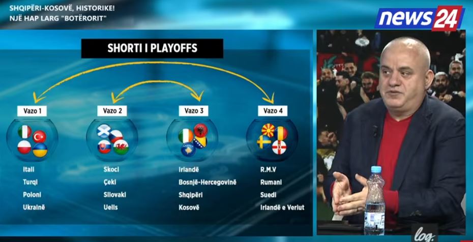 Shqipëria pret të mësojë kundërshtarin në Play off të Botërorit, në shortin e të enjtes. Gazetari i njohur, Artan Hoxha në emisionin “Log”, në News 24, tregoi preferencat e tij për kundërshtarët e mundshëm të kuqezinjve në këtë fazë. Hoxha thotë se Skocia do ishte mirë të shmangej, sakaq ai sheh si një rival të kalueshëm Ukrainën.