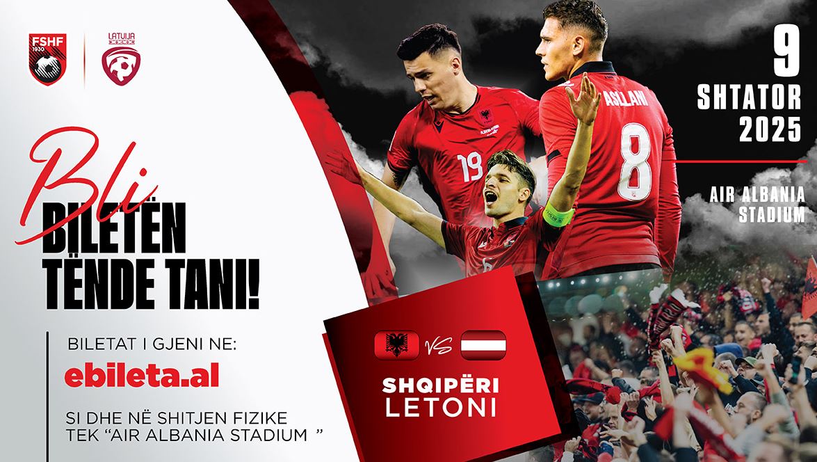 Federata e Futbollit njofton se nga sot të gjithë futbolldashësit dhe tifozët e Kombëtares kanë mundësi të blejnë biletat edhe fizikisht për ndeshjen e 9 shtatorit, Shqipëri – Letoni, e vlefshme për kualifikueset e Kupës së Botës 2026.