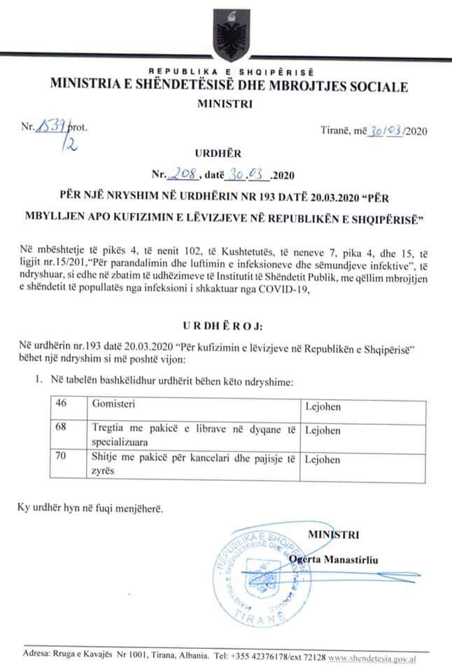 Zgjerohet lista e bizneseve që lejohen të zhvillojnë aktivitetin. Nga sot lejohen te hapura edhe gomisteri, librari dhe kancelari.