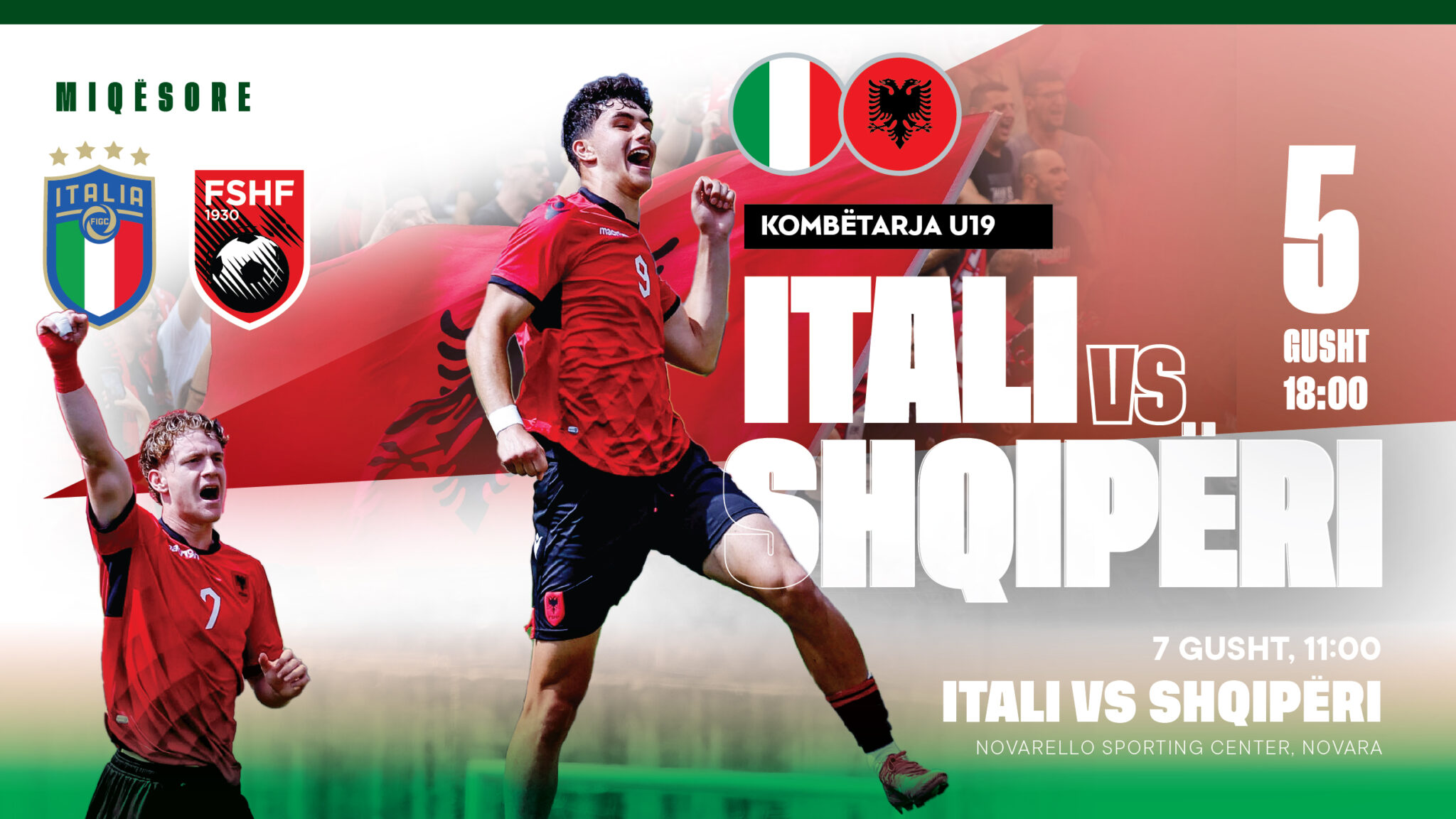 Federata Shqiptare e Futbollit dhe ajo Italiane kanë rënë dakord që të dy takimet të zhvillohen në Novara, në qendrën sportive “Novarello”. Ndeshja e parë do të luhet më 5 gusht, në orën 18:00, ndërsa sfida e dytë më 7 gusht, në orën 11:00.