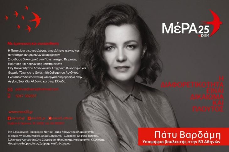Pati Vardhami është një politikane shqiptare në Greqi. Pjesë e partisë “Mera 25”, ajo garon për zgjedhjet në Paralamentin Europian.