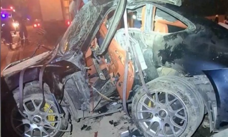 Automjeti i tij u përplas në një shtyllë në vend dhe më pas në një pemë, ku u nda përgjysmë.